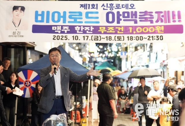 이런뉴스(e-runnews) 김삼성 기자 | 신상진 성남시장은 17일 저녁 신흥로데오거리 종합시장 먹자골목에서 열린 ‘제1회 신흥로데오 비어로드 야맥축제’ 개막식에 참석해 관계자들을 격려하고 시민들과 소통했다.