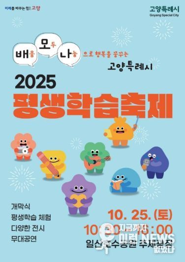이런뉴스(e-runnews) 김삼성 기자 | 고양특례시는 오는 25일 일산호수공원 주제광장에서 ‘2025년 고양특례시 평생학습축제’를 개최한다고 밝혔다.