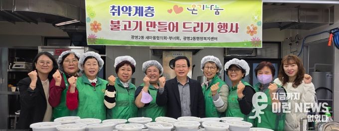 이런뉴스(e-runnews) 김삼성 기자 | 광명시 광명2동 새마을부녀회는 지난 20일 광명2동 행정복지센터에서 ‘온기 나눔 사랑의 불고기’ 행사를 열었다.