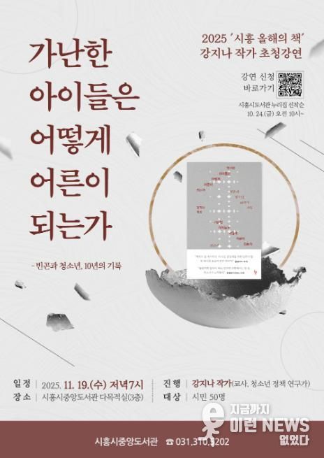 이런뉴스(e-runnews) 김삼성 기자 | 시흥시 중앙도서관은 ‘2025년 시흥 올해의 책’으로 선정된 '가난한 아이들은 어떻게 어른이 되는가'의 저자 강지나 작가를 초청해 11월 19일 오후 7시 중앙도서관 3층 다목적실에서 시민 강연회를 개최한다.
