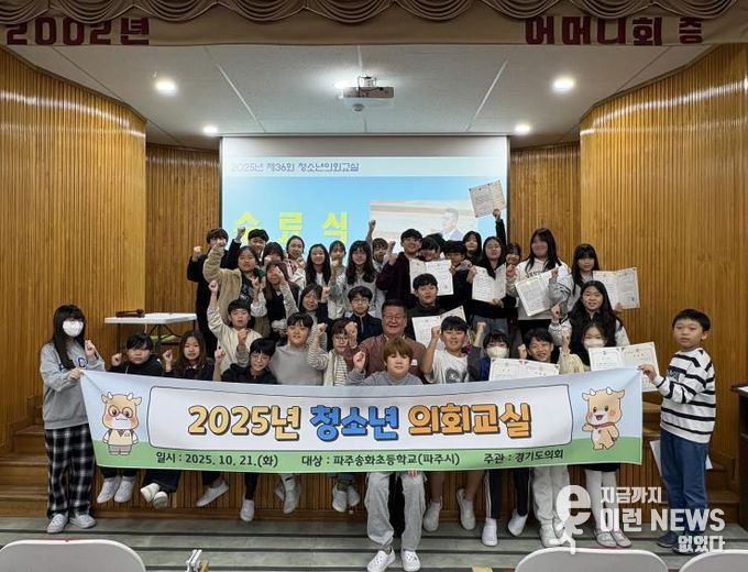 이런뉴스(e-runnews) 김삼성 기자 | 경기도의회 건설교통위원회 안명규 의원(국민의힘, 파주5)은 10월 21일 파주송화초등학교 시청각실에서 열린 ‘제36회 청소년의회교실’에 참석해 파주 송화초등학교 학생들과 함께 모의의회를 체험하며 민주주의의 가치와 의회의 역할을 함께 나누는 뜻깊은 시간을 가졌다.