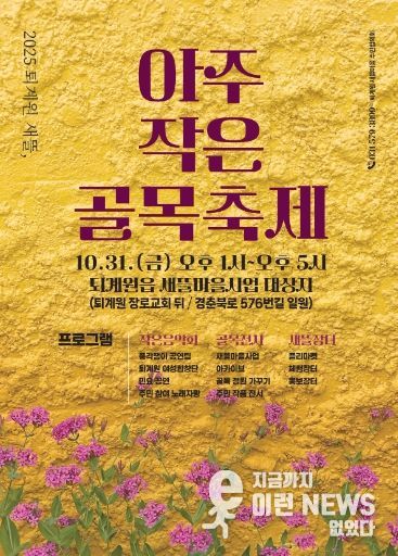이런뉴스(e-runnews) 김삼성 기자 | 남양주시는 오는 31일 퇴계원읍 경춘북로 576번길 일원에서‘2025 퇴계원 새뜰, 아주 작은 골목 축제’를 개최한다고 22일 밝혔다.