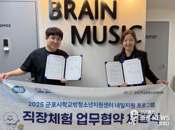 이런뉴스(e-runnews) 김삼성 기자 | 군포시청소년재단 군포시학교밖청소년지원센터는 작곡가를 꿈꾸는 학교 밖 청소년과 관내 실용음악학원인 ‘브레인기타학원’ 간의 직장체험 업무협약을 체결했다고 밝혔다.