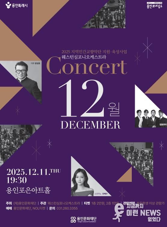 이런뉴스(e-runnews) 김삼성 기자 | 용인문화재단은 오는 12월 11일 오후 7시 30분, 용인포은아트홀에서 웨스턴심포니오케스트라 '콘서트 ‘12월’' 공연을 개최한다.