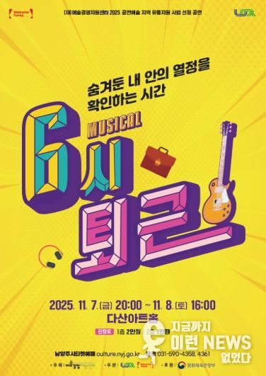 이런뉴스(e-runnews) 김삼성 기자 | 남양주시는 오는 11월 7일부터 8일까지 다산아트홀에서 뮤지컬‘6시 퇴근’을 공연한다고 밝혔다.