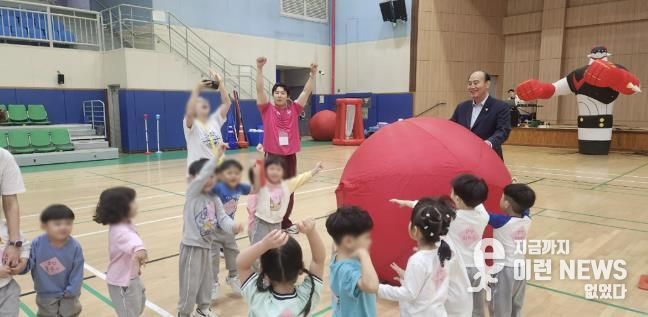 이번 행사는 원아와 보육교직원이 함께 참여해 경쾌한 음악에 맞춰 준비체조를 하고, 줄다리기·공던지기 등 단체게임을 즐기며 웃음과 활력이 넘치는 시간을 보냈다. 행사장에는 에어바운스, 레일기차, 바이킹 등 다양한 실외 놀이시설이 설치돼 연령별 어린이들이 안전하게 마음껏 뛰어놀 수 있도록 했다.