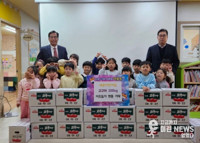 이런뉴스(e-runnews) 김삼성 기자 | 여흥동에 위치한 세종어린이집은 지난 29일, 원아들이 정성껏 재배하고 수확한 고구마 20박스(총 200kg)를 여흥동행정복지센터에 기탁했다.