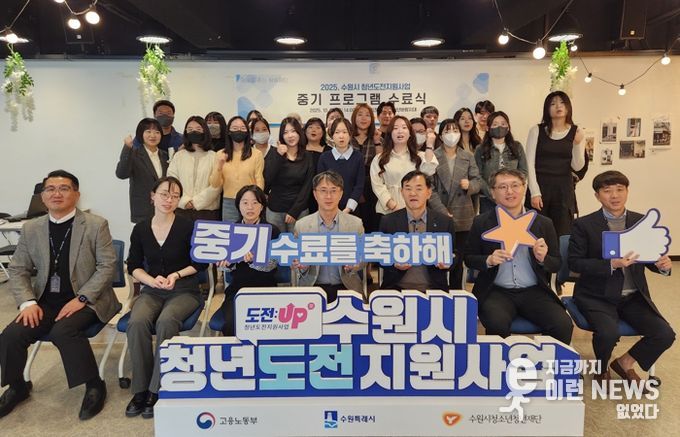 이런뉴스(e-runnews) 김삼성 기자 | 수원시청소년청년재단 수원시청년지원센터는 청년도전지원사업 중기 수료식에서 수료생들을 격려하며, 수료율 97%라는 성과를 거뒀다고 밝혔다. 재단은 아울러 수료생들의 안정적인 사회 진입을 위해 일자리 센터와 연계하여 지속적인 사후 취업 지원을 약속했다.