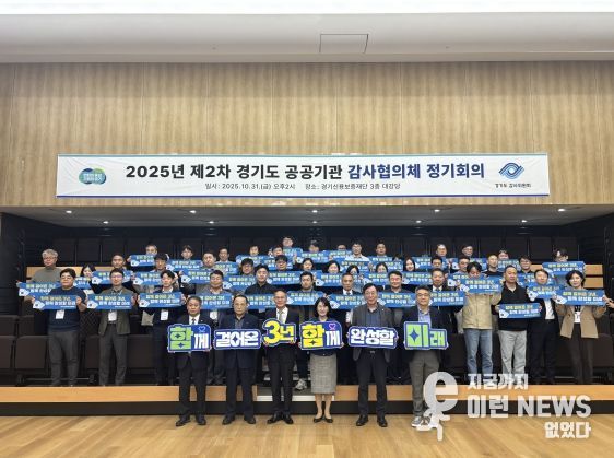 이런뉴스(e-runnews) 김삼성 기자 | 경기도 산하 공공기관 감사부서 직원들이 함께 모여 공동의 부패 이슈 대응 방안을 논의하는 ‘경기도 공공기관 감사협의체’가 10월 31일 경기신용보증재단 대강당에서 2025년 제2차 정기회의를 개최했다.