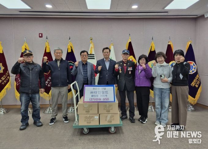 이런뉴스(e-runnews) 김삼성 기자 | ㈜태인월드가 지난 10월 30일, 양주시 보훈단체에 화장품 300개(총 270만 원 상당)를 기부했다.