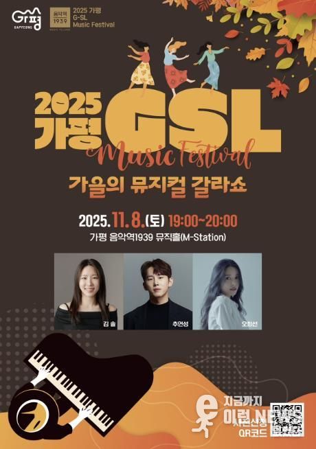 이런뉴스(e-runnews) 김삼성 기자 | 가평군은 오는 8일, 음악역1939 뮤직홀에서 올해 마지막 무대인 ‘가평 토요 라이브(G-SL)’ 뮤지컬 갈라쇼 공연을 개최한다고 밝혔다.