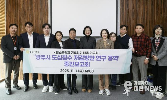 이런뉴스(e-runnews) 김삼성 기자 | 광주시의회 의원연구단체인‘탄소중립과 기후위기 대응 연구회’(대표 주임록 의원)는 11월 7일 오후 2시, 시의회 3층 대회의실에서 '광주시 도심침수 저감방안 연구 용역' 중간보고회를 개최했다.