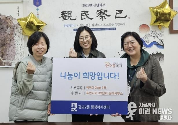 임지희 관리사무소장은 “단지 내 어려운 이웃들을 생각하며 작게나마 힘이 되고 싶었다”며 “이 백미가 추운 겨울을 앞두고 따뜻한 식탁 위에 놓여 작은 희망이 되길 바란다”고 말했다.