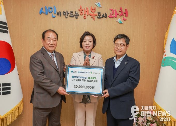 이런뉴스(e-runnews) 김삼성 기자 | 과천시는 과천새마을금고가 지역 아동과 청소년을 위한 복지사업 지원을 위해 성금 2천만 원을 과천시장애인복지관에 기탁했다고 7일 밝혔다.