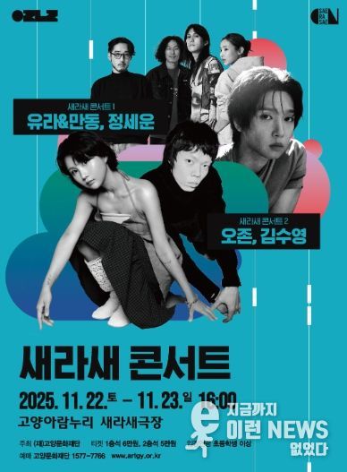 이런뉴스(e-runnews) 김삼성 기자 | (재)고양문화재단은 소극장 기획공연 시리즈 ‘2025 새라새 ON 시리즈’의 11월 프로그램으로, 감각적인 싱어송라이터들을 만날 수 있는 '새라새 콘서트 1~2'를 11월 22일과 23일 양일간 고양아람누리 새라새극장에서 개최한다.