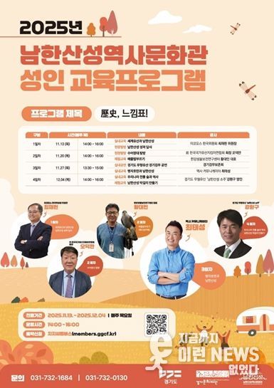이런뉴스(e-runnews) 김삼성 기자 | 경기문화재단 남한산성역사문화관은 오는 11월 13일부터 12월 4일까지 매주 목요일, 성인을 대상으로 한 인문 교양 프로그램 〈歷史(역사), 느낌표!〉를 운영한다. 이번 프로그램은 세계유산 남한산성의 역사와 문화를 다양한 관점에서 탐구하며, 세계유산의 가치를 이해할 수 있도록 기획됐다.