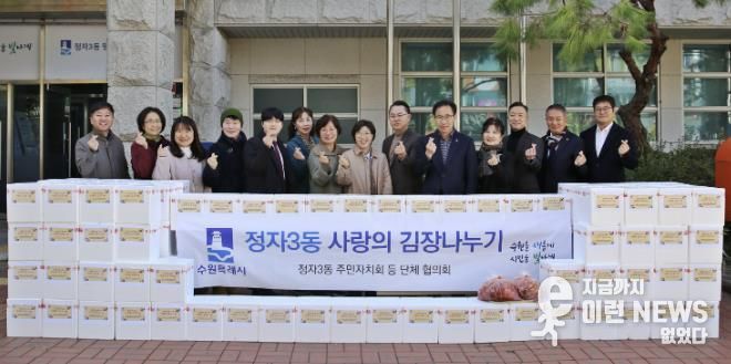 이런뉴스(e-runnews) 김삼성 기자 | 수원시 장안구 정자3동은 지난 10일 ‘2025년 정자3동 사랑의 김장 나눔’ 행사를 열고 기초생활수급자 및 한부모가족 등 생활이 어려운 이웃에게 김장 김치 140여 상자를 전달했다.