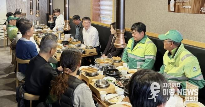 이번 간담회는 가을철 낙엽 수거 및 청소 업무로 노고가 많은 환경관리원들을 격려하고 현장 애로사항을 청취하기 위해 마련됐다.
