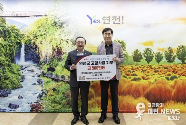 이런뉴스(e-runnews) 김삼성 기자 | 연천군은 지난 7일 오후 4시 30분 군수실에서 ㈜케이지엔지니어링 종합건축사사무소 김상찬 사장으로부터 고향사랑기부금 500만원을 전달받았다.