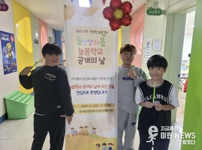 이런뉴스(e-runnews) 김삼성 기자 | 파주 한가람초 내에 위치한 늘상상해봄 거점센터에서는 2학기 늘봄학교 공개의 날을 운영했다. 2025년 11월 4일 화요일부터 11월 10일 월요일까지 일주일 동안 진행됐으며 거점센터 프로그램 수강생 학부모님들이 참관했다.