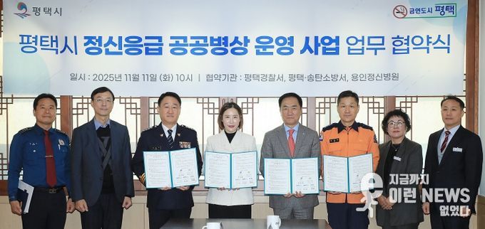 이런뉴스(e-runnews) 김삼성 기자 | 평택시는 지난 11일 ‘정신 응급대응 공공병상 운영 사업’ 업무협약을 평택경찰서, 평택·송탄소방서, 정신의료기관(용인정신병원)과 체결했다.