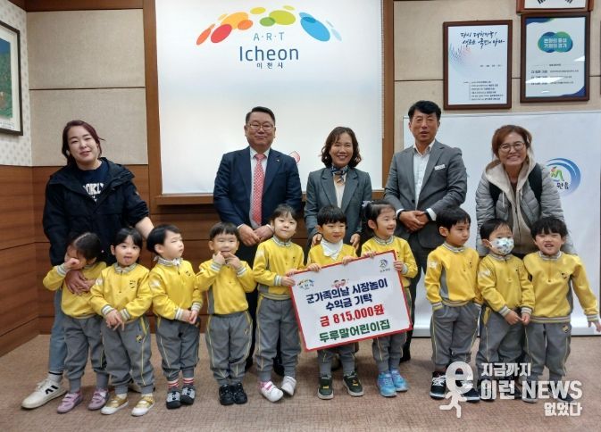 이런뉴스(e-runnews) 김삼성 기자 | 이천시 장호원읍 두루말어린이집은 11월 11일, 어린이들과 함께 장호원읍행정복지센터에 방문해 군가족의 날 아나바다 시장놀이 행사의 수익금 815,000원을 전달했다.