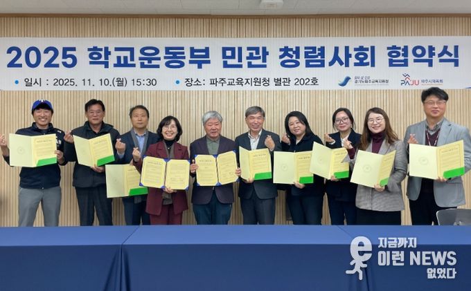 이런뉴스(e-runnews) 김삼성 기자 | 경기도파주교육지원청은 11월 10일 학교운동부 민‧관 청렴사회 협약식 및 학교체육진흥위원회를 개최했다.