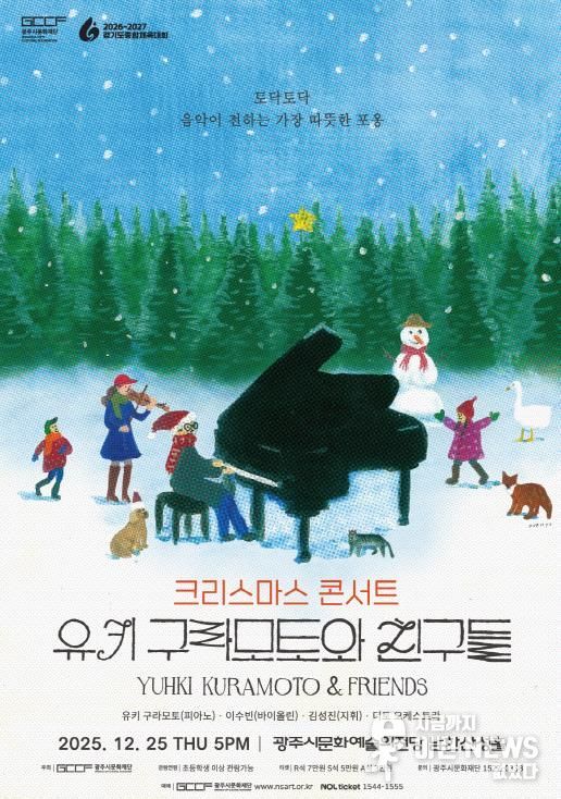 이런뉴스(e-runnews) 김삼성 기자 | (재)광주시문화재단은 오는 12월 25일 오후 5시, 광주시문화예술의전당 남한산성홀에서 ‘2025 크리스마스 콘서트 '유키 구라모토와 친구들'을 개최한다.
