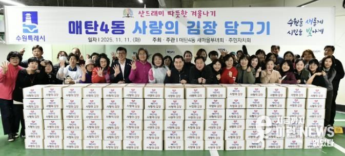 이런뉴스(e-runnews) 김삼성 기자 | 수원시 영통구 매탄4동 새마을부녀회는 11월 11일,‘2025 사랑의 김장나눔' 행사를 개최했다.