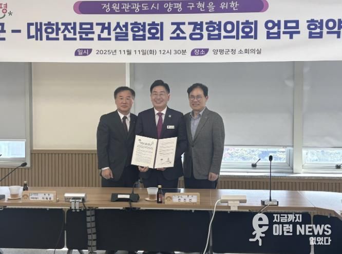 이런뉴스(e-runnews) 김삼성 기자 | 양평군은 지난 11일 군청 회의실에서 대한전문건설협회 조경식재·시설물공사업협의회와 ‘정원관광도시 양평 구현을 위한 조경분야 상생협력 협약식’을 개최했다.