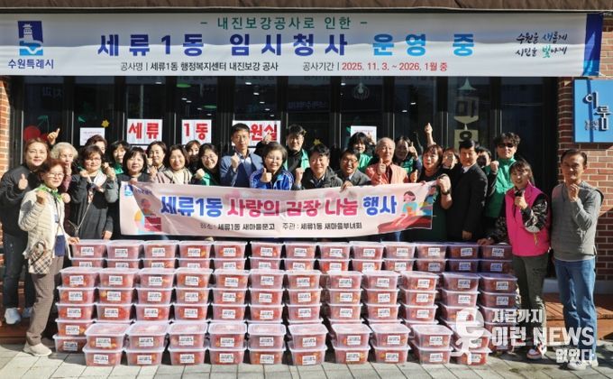 이런뉴스(e-runnews) 김삼성 기자 | 수원시 권선구 세류1동 행정복지센터는 지난 11일부터 12일까지, 새마을부녀회 주관으로 관내 어려운 이웃분들을 위해 ‘2025년 사랑의 김장 담가주기’행사를 진행했다.