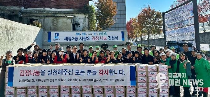 이런뉴스(e-runnews) 김삼성 기자 | 수원시 권선구 세류2동 행정복지센터는 12일, 세류2동 행정복지센터 주차장에서 ‘사랑의 김장 나눔 행사’를 열었다.