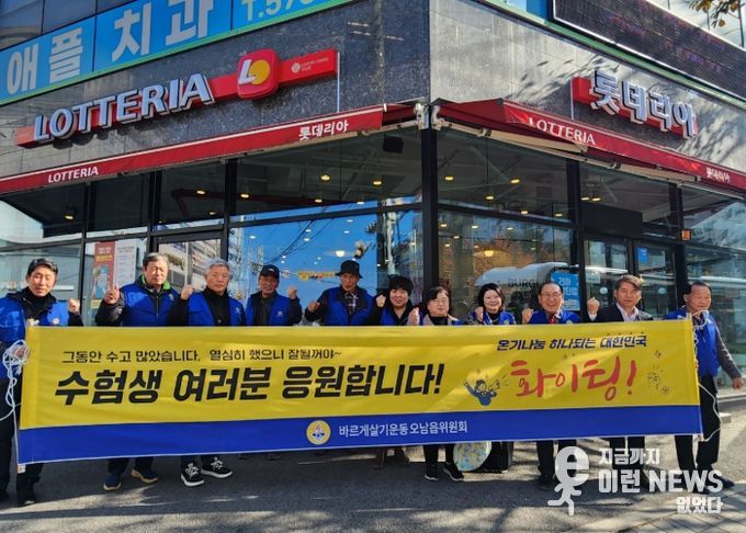 이번 캠페인은 시험을 앞둔 수험생들에게 따뜻한 응원의 메시지를 전하고, 지역사회가 함께 격려하는 분위기를 조성하기 위해 마련됐다. 캠페인에는 바르게살기운동협의회 위원들과 오남읍 직원들이 함께 참여했다.