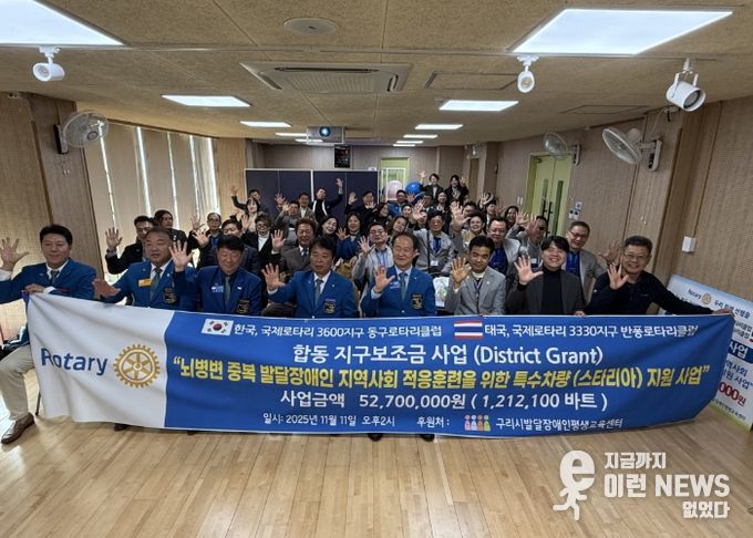 이날 전달식에는 동구로타리클럽 김성환 회장과 회원들, 태국 반퐁로타리클럽 관계자, 구리시발달장애인평생교육센터 정은중 센터장 등이 참석해 기증 차량 앞에서 뜻깊은 봉사의 의미를 되새기는 시간을 가졌다.