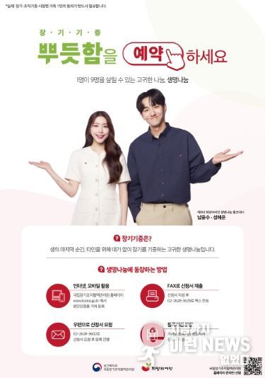 이런뉴스(e-runnews) 김삼성 기자 | 고양특례시 일산동구보건소는 생명나눔 문화를 확산하기 위해‘장기·인체조직기증 희망등록’을 연중 접수하고 있다고 12일 밝혔다.
