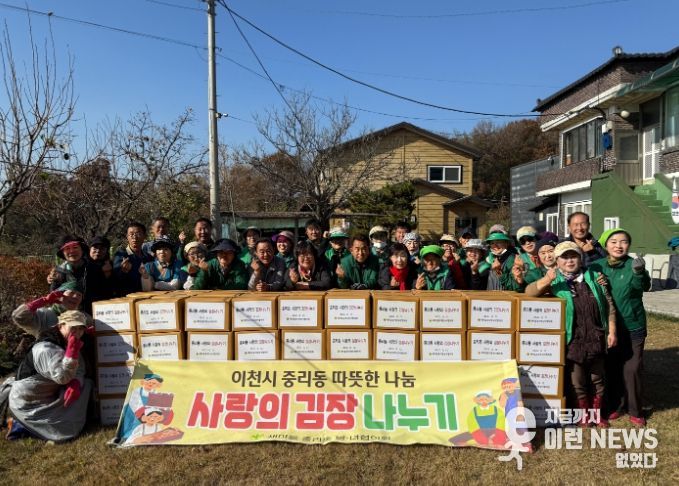 이런뉴스(e-runnews) 김삼성 기자 | 이천시 새마을중리동남녀협의회는 11월 11일부터 12일까지 이틀간 이천시 대포동 일원에서 ‘2025 사랑의 김장 나눔 행사’ 및 ‘단월초등학교 장학금 기탁식’을 실시했다.