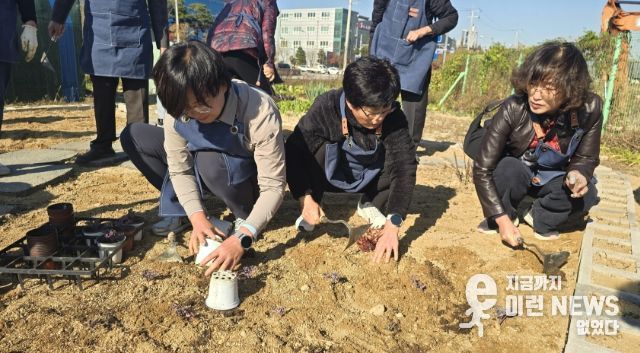 25㎡ 규모 손바닥정원 1개를 만들었다. 꽃양배추 200주와 튤립구근 500구를 심어 겨울철 색감을 살린 모델 정원을 구현했다.