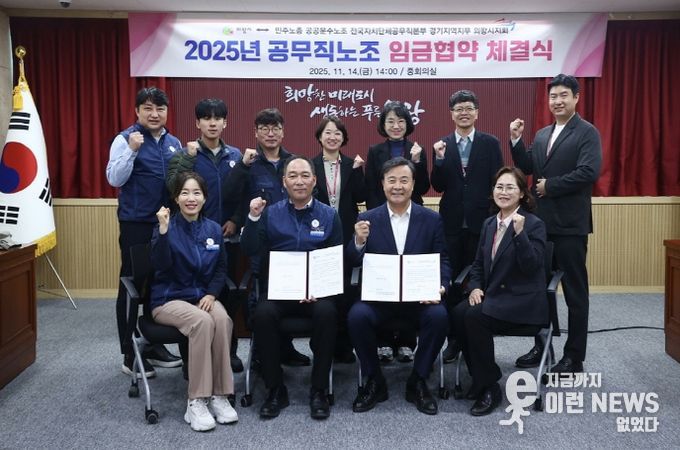 이런뉴스(e-runnews) 김삼성 기자 | 의왕시가 11월 14일 시청 중회의실에서 공무직 대표노조인 공공운수노동조합 전국자치단체공무직본부 경기지역지부 의왕시지회(지회장 이태겸)와 2025년 임금협약을 체결했다.