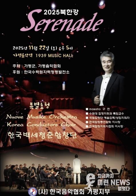 이런뉴스(e-runnews) 김삼성 기자 | 가평군과 가평음악협회가 공동 주최하고 한국수력원자력㈜ 청평발전소가 후원하는 ‘2025 북한강 세레나데’ 연주회가 오는 22일과 29일 음악역1939 뮤직홀에서 열린다.