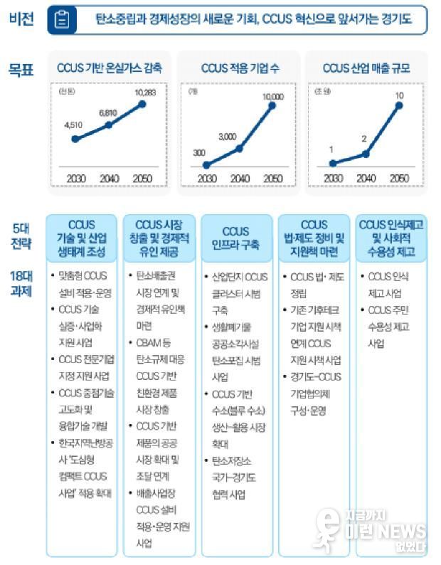 경기연구원은 최근 ‘경기도의 탄소중립 달성을 위한 CCUS 정책 육성 방안’ 보고서를 발간하고, 경기도형 CCUS 육성 로드맵과 5대 전략, 18개 세부과제를 제시했다.