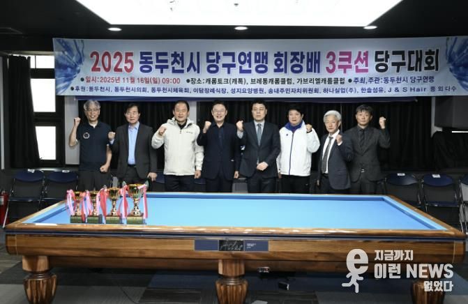 이런뉴스(e-runnews) 김삼성 기자 | 동두천시당구연맹이 주최·주관하고 동두천시와 동두천시의회가 후원한 ‘2025 동두천시당구연맹 협회장배 3쿠션 당구대회’가 지난 11월 16일 동두천 캐롬토크클럽 당구장에서 성황리에 열렸다.