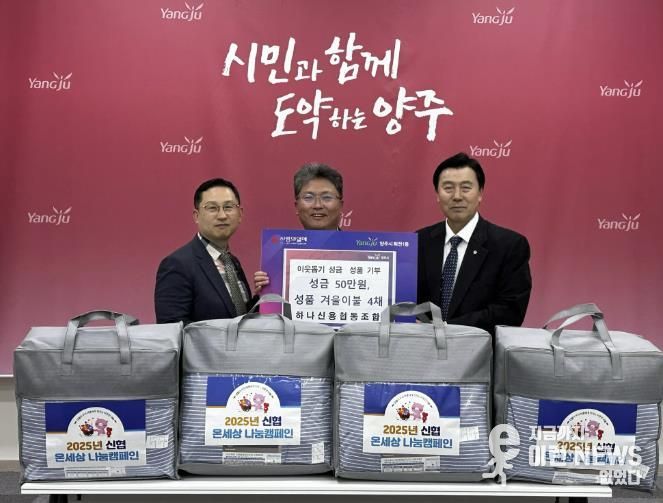 이런뉴스(e-runnews) 김삼성 기자 | 하나신협이 17일, 회천1동 행정복지센터를 방문해 지역 내 경제적으로 어려운 이웃을 위해 성금 50만 원과 겨울 이불 4채를 기부했다.