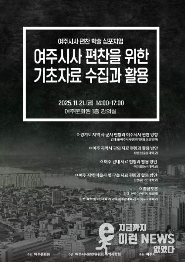 이런뉴스(e-runnews) 김삼성 기자 | 여주문화원은 오는 21일 여주문화원 1층 강의실에서 여주시사 편찬 학술 심포지엄을 개최한다고 밝혔다.