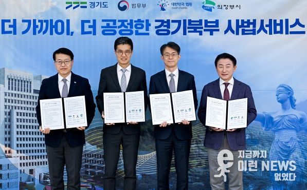 이런뉴스(e-runnews) 김삼성 기자 | 의정부시는 11월 18일 경기도청 북부청사에서 법무부, 법원행정처, 경기도와 함께 ‘경기북부 사법복지 서비스 향상을 위한 업무협약’을 체결했다.