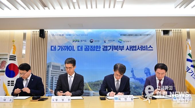 김대순 경기도 행정2부지사와 황병헌 의정부지방법원 법원장, 이만흠 의정부지방검찰청 검사장, 김동근 의정부시장은 18일 경기도 북부청사에서 이런 내용을 담은 ‘경기북부 사법복지 서비스 향상 업무협약’에 서명했다.