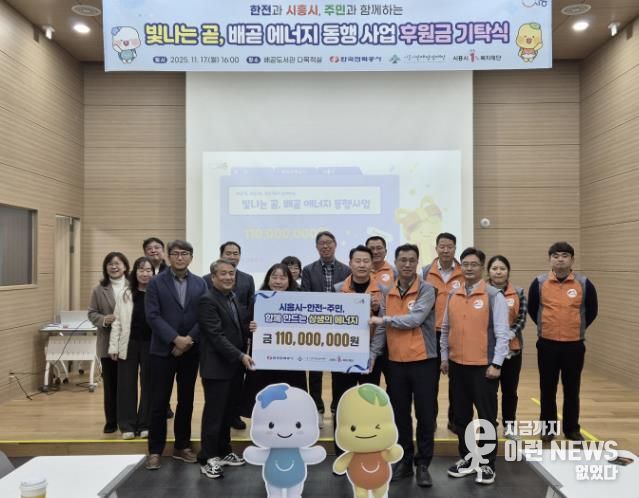 이런뉴스(e-runnews) 김삼성 기자 | 시흥시는 한국전력공사와 지역 상생 강화를 위해 지난 11월 17일 배곧도서관 다목적실에서 ‘시ㆍ한전ㆍ주민이 함께하는 사회공헌 후원금 기탁식’을 열었다.