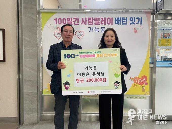 이런뉴스(e-runnews) 김삼성 기자 | 의정부시 가능동주민센터는 11월 18일 이동윤 통장이 관내 취약계층을 위해 성금 20만 원을 기탁했다고 밝혔다.