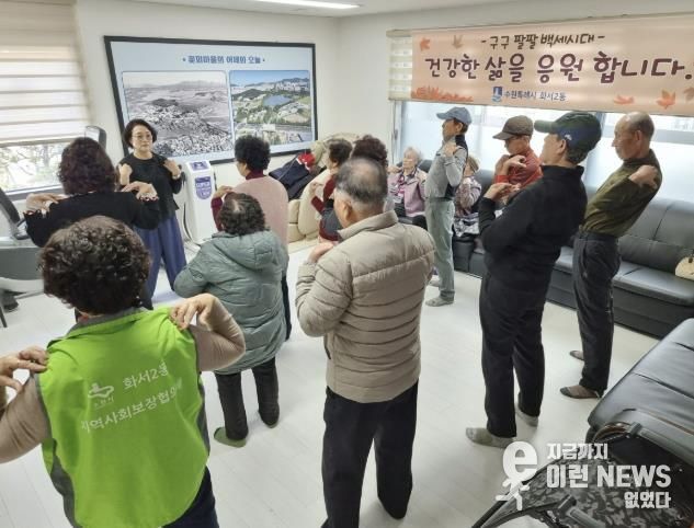이런뉴스(e-runnews) 김삼성 기자 | 수원시 팔달구 화서2동 지역사회보장협의체는 지난 18일, 꽃뫼경로당에서 어르신들의 신체 건강증진과 정서적 안정 지원을 위한 ‘꽃뫼 체조교실’을 개최했다.
