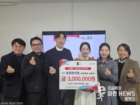 이런뉴스(e-runnews) 김삼성 기자 | 오산시는 정원한의원이 지난 18일 관내 학대피해아동 지원을 위해 지정후원금 300만 원을 기탁했다고 밝혔다.