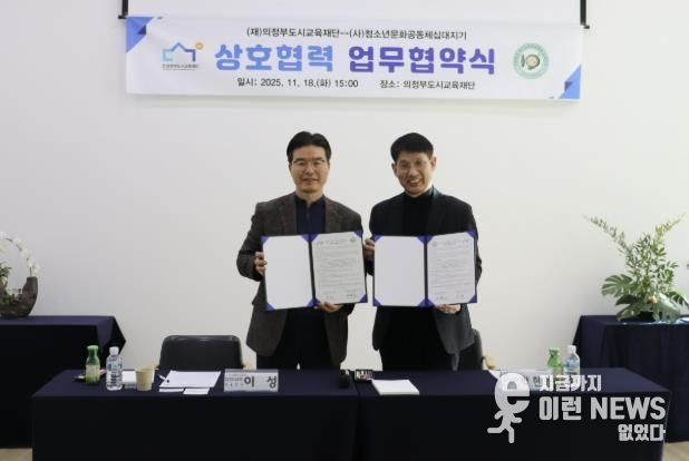 이런뉴스(e-runnews) 김삼성 기자 | 의정부도시교육재단은 지난 11월 18일, 사단법인 청소년문화공동체 십대지기와 위기청소년을 조기에 발굴하고 지원하기 위한 업무협약(MOU)을 체결했다.